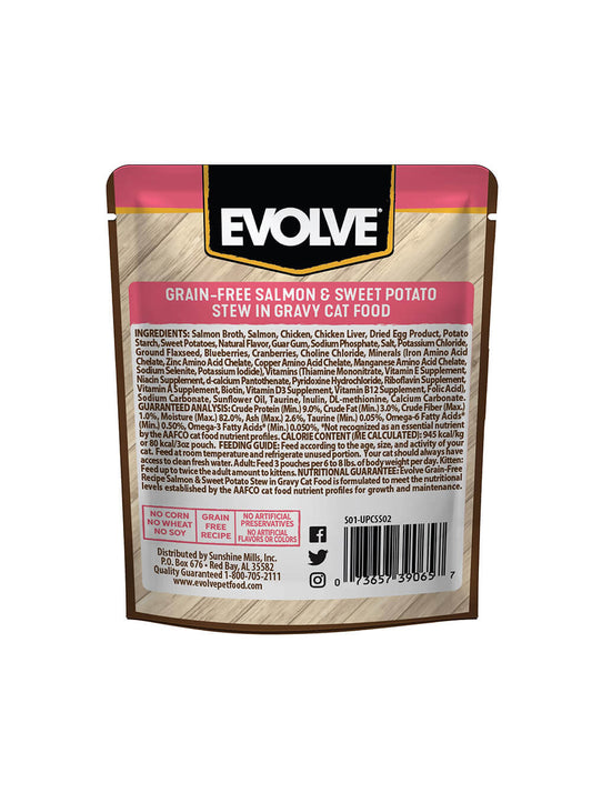 EVOLVE Grain Free Pouche para Gatos - Salmón y Patatas Dulces 85gr