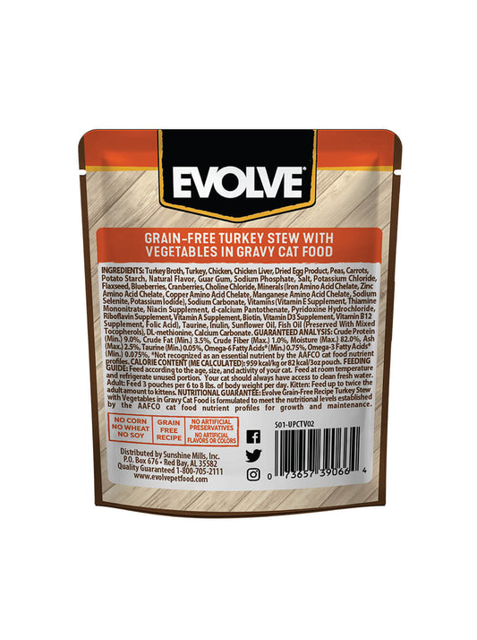 EVOLVE Grain Free Pouche para Gatos - Pavo y Vegetales 85gr