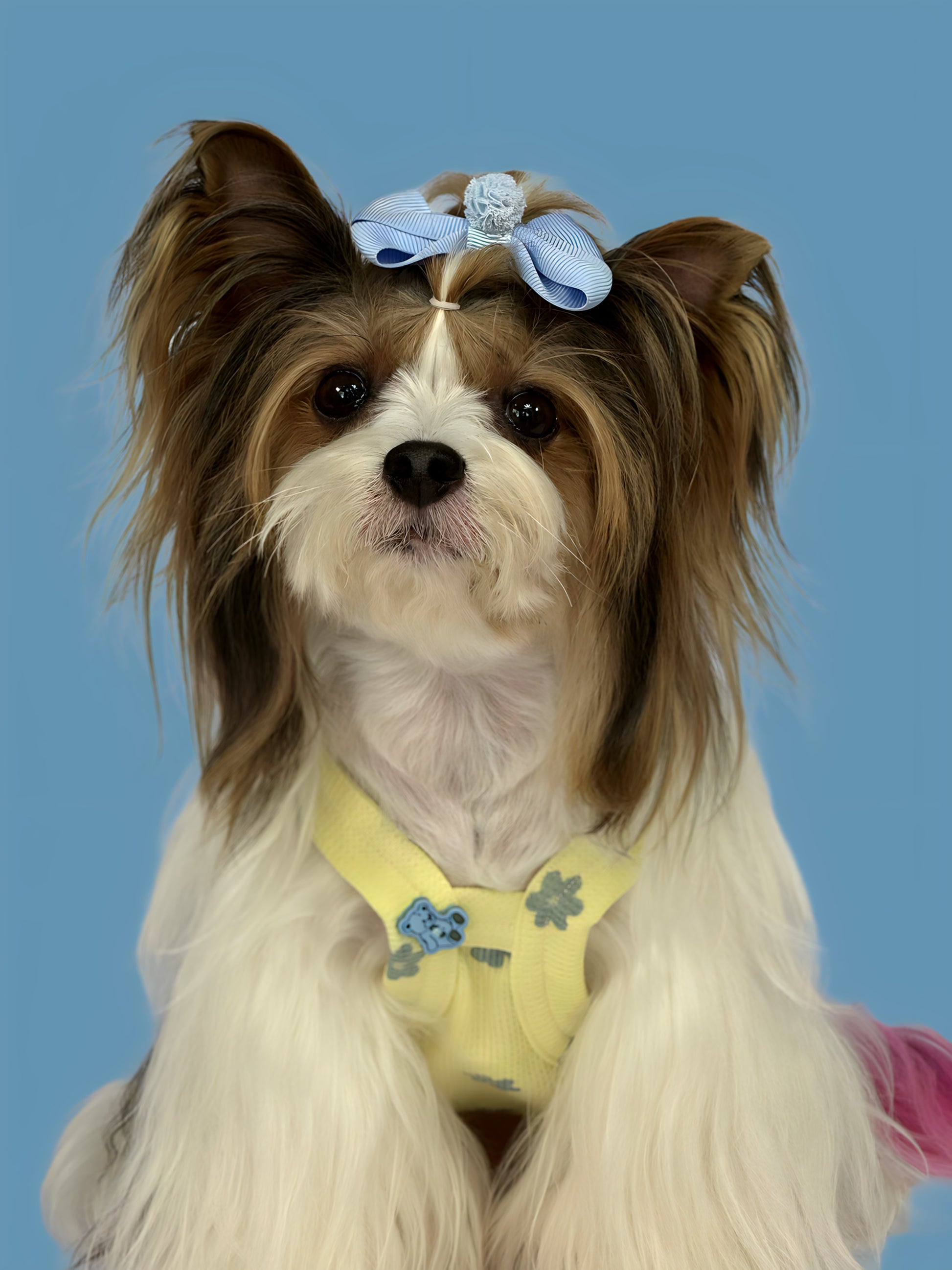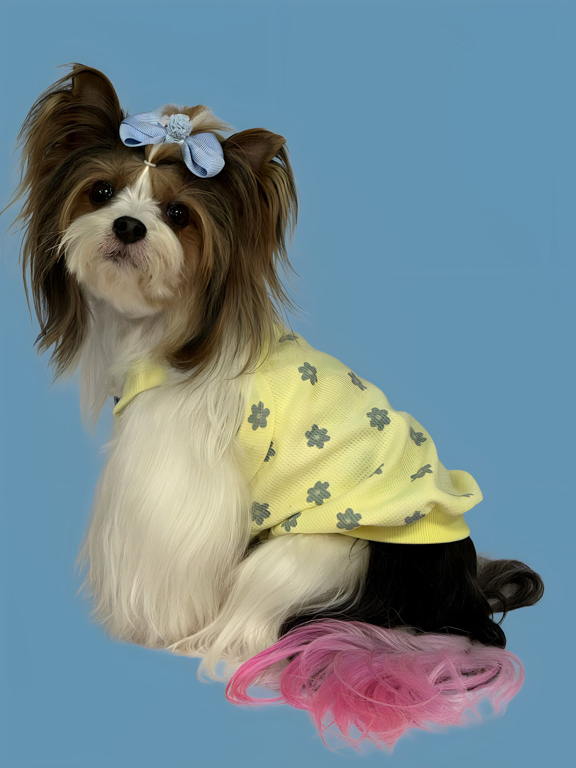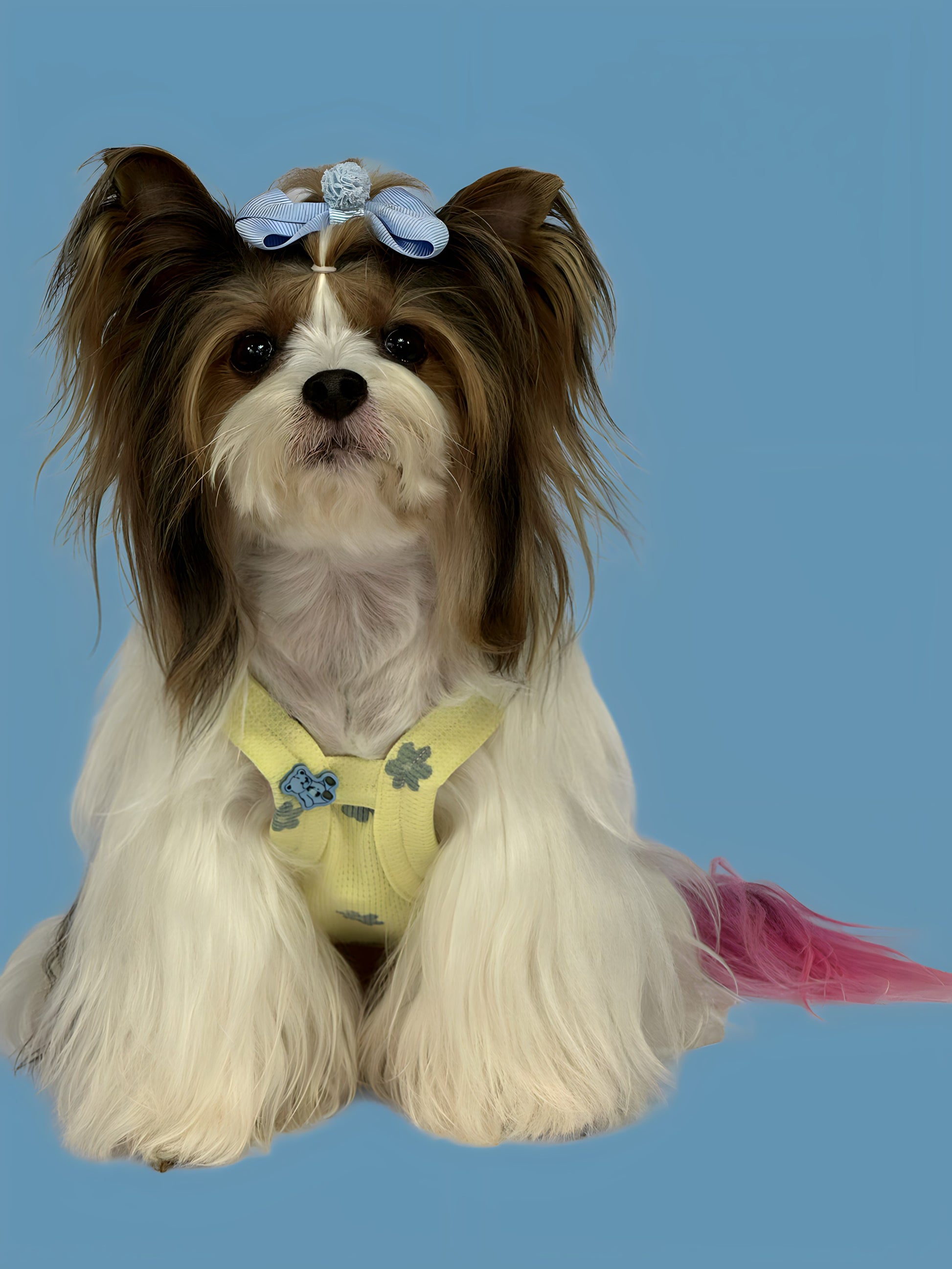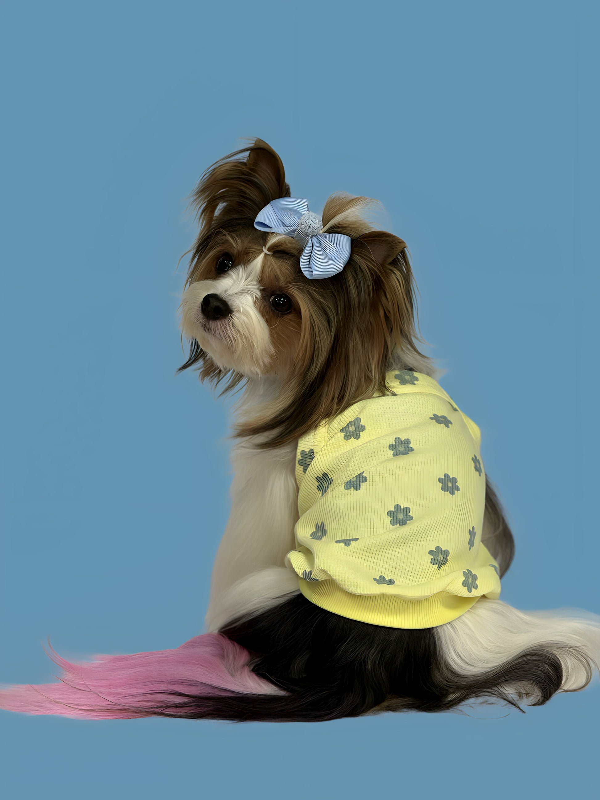 Blusa de tiras fabricada 100% en algodón, estampado de pequeñas flores azules, botón decorativo en el pecho de tierno oso.