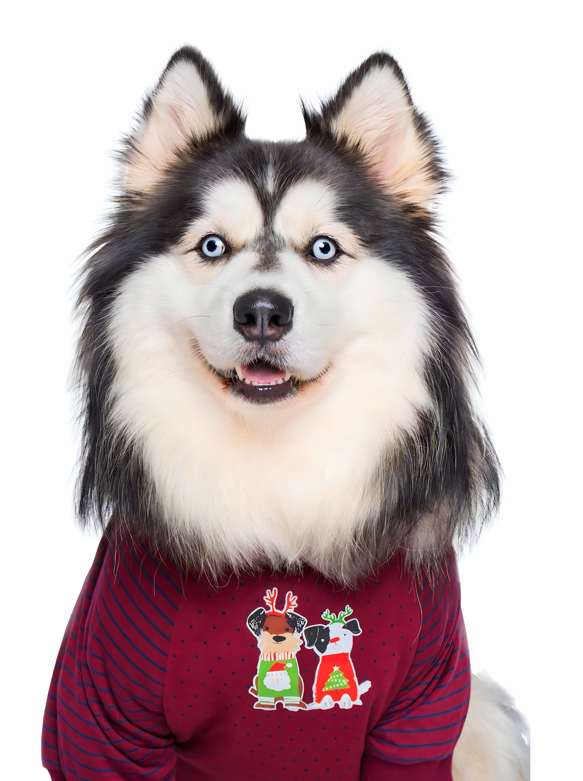 Fabricado en algodón con detalle de puntos color azul oscuro en pecho y espalda, en mangas tela con rayas y como cereza en el pastel un estampado en pecho y espalda de tiernos perritos, disponible en todas las tallas para ti y toda tu familia.