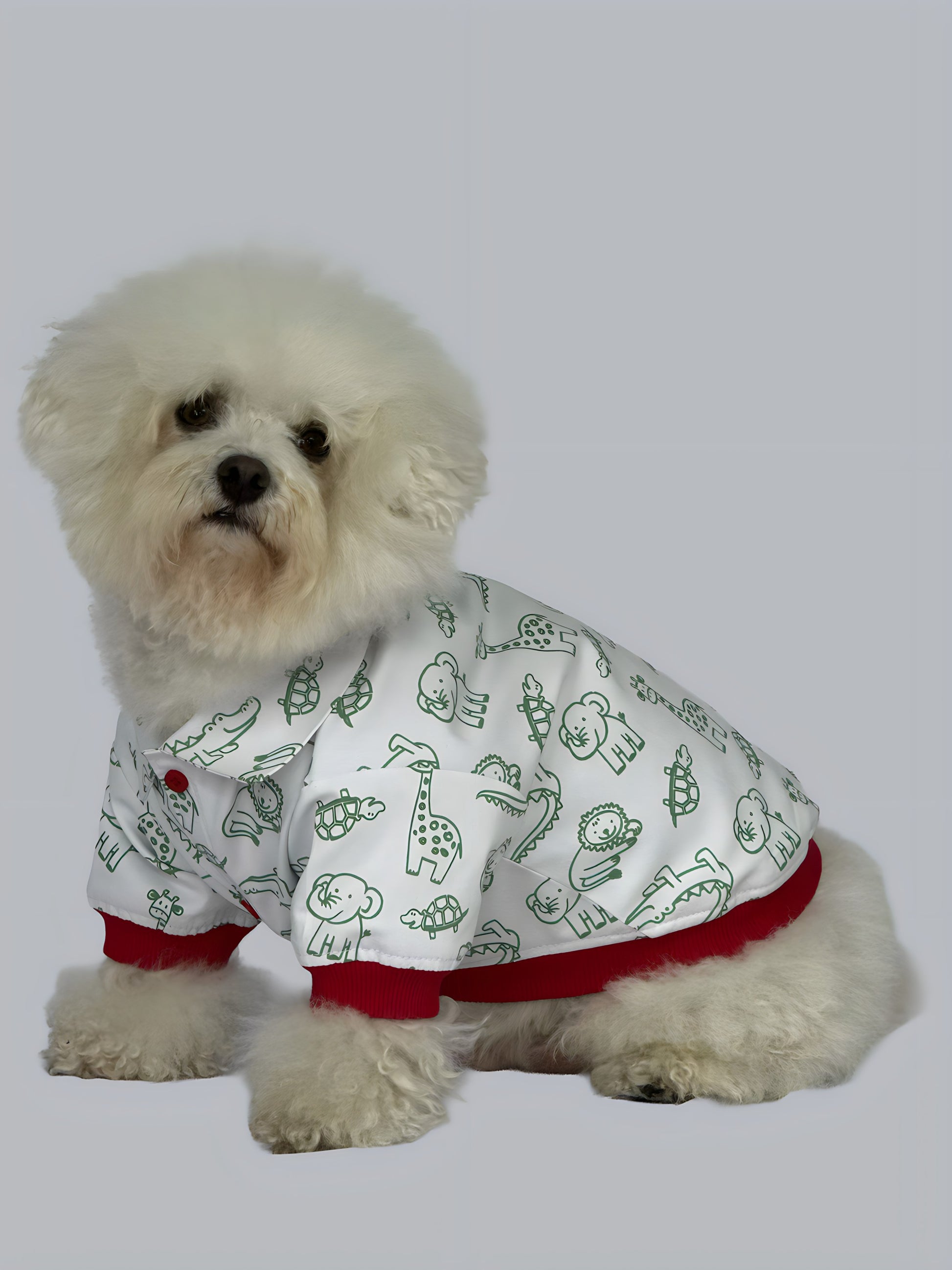 Chaqueta fabricada en dril, cuello camisero, cierre con botones en el pecho, hueco para sacar la correa en espalda, estampado de animales de África, liviana, cómoda y perfecta para todos los climas.