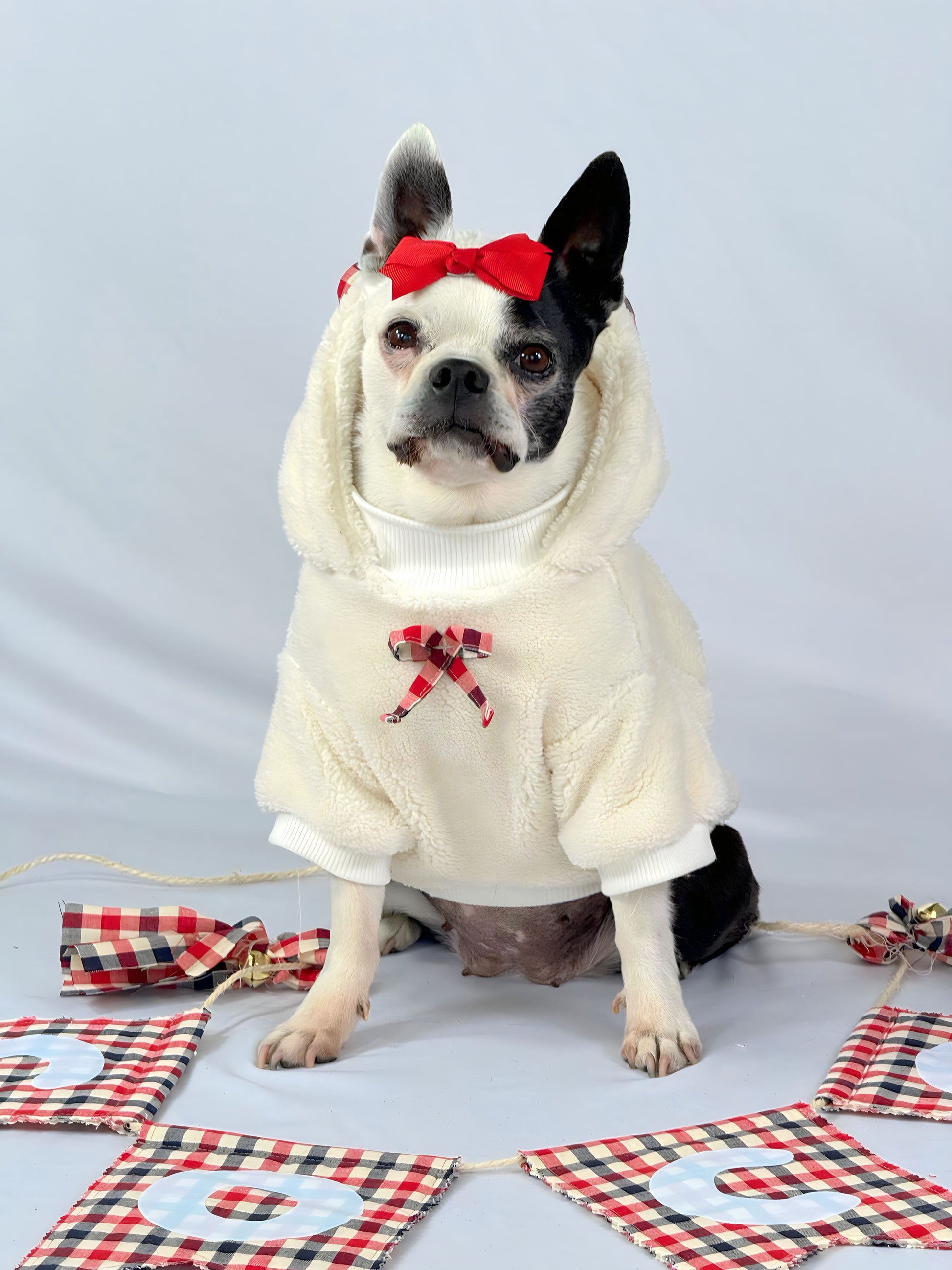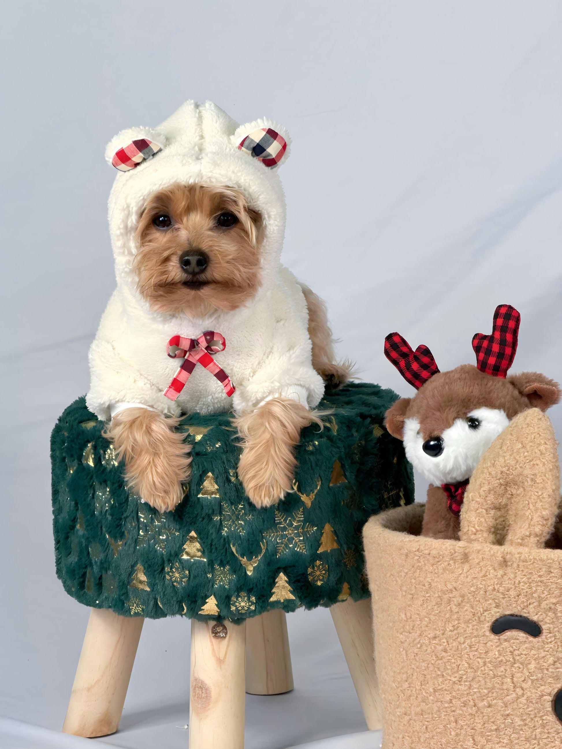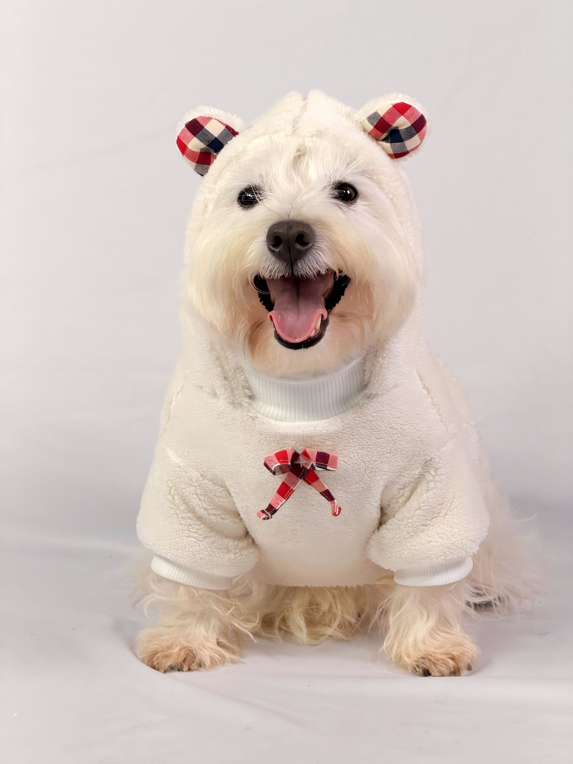 Una prenda con la que veníamos soñando hace 1 año: tiernas orejas con tela leñadora y lazo en el cuello para que derritas de amor con tu osito. No genera alergia, es liviano, calentito y muy cómodo.