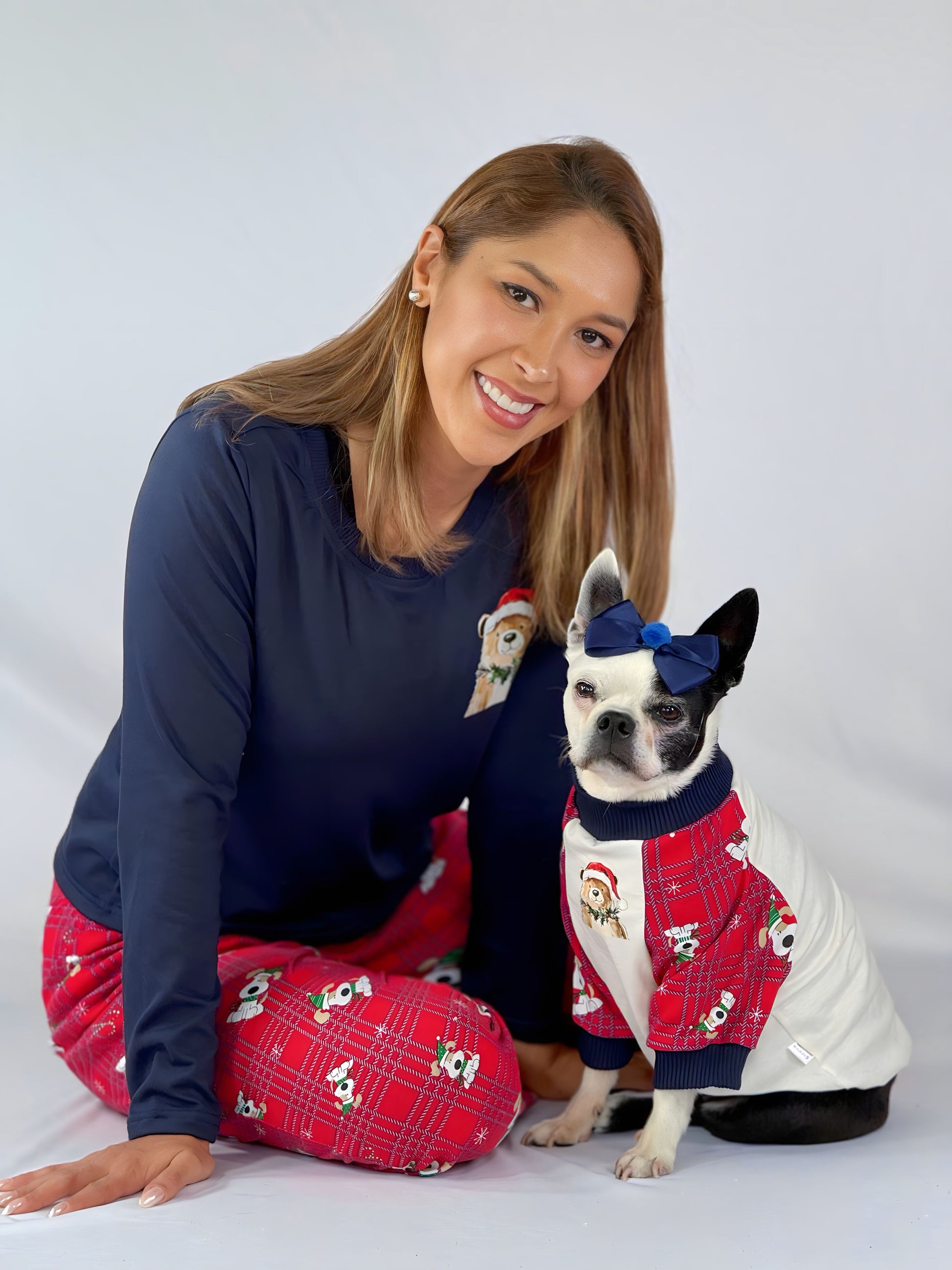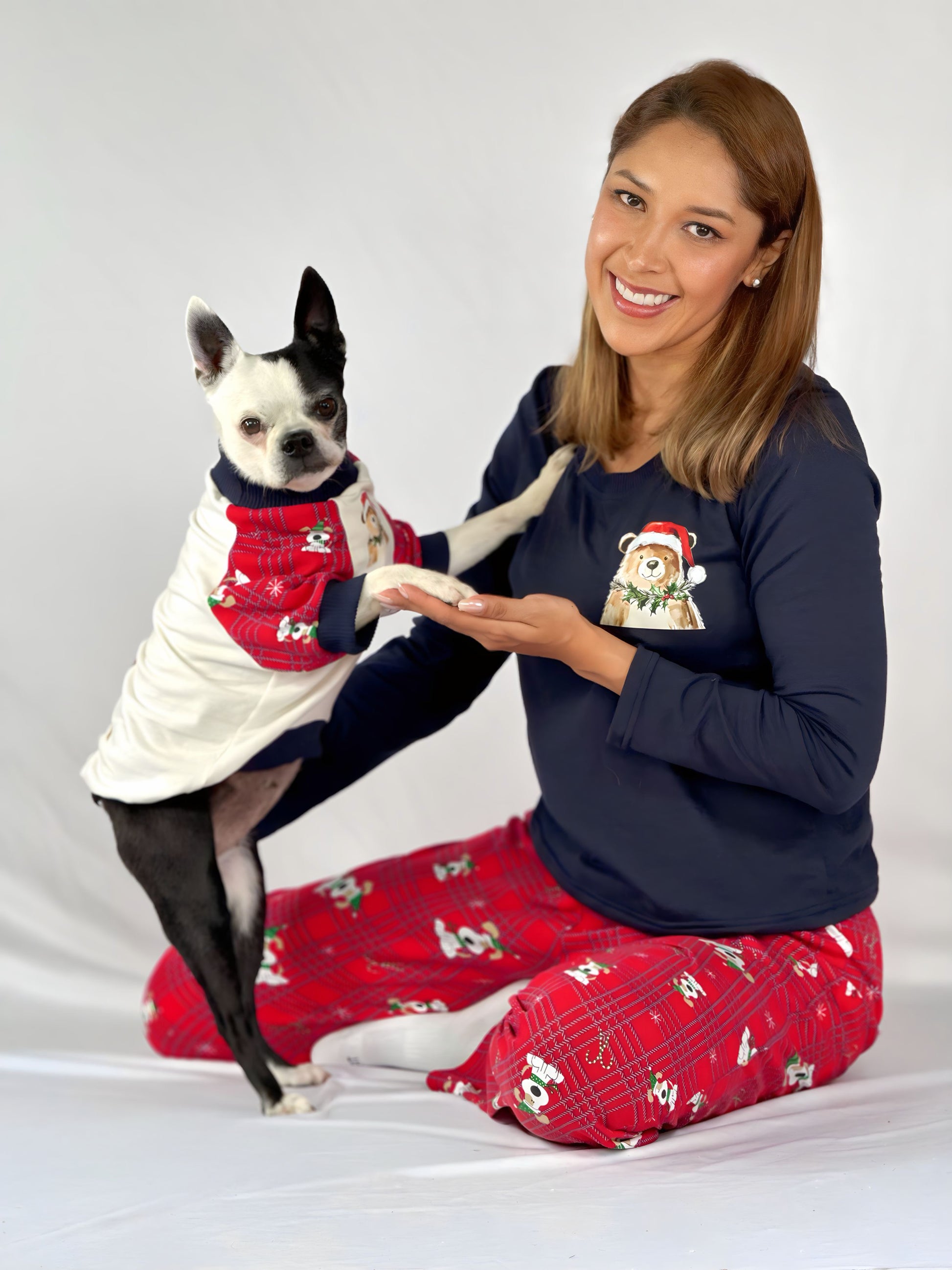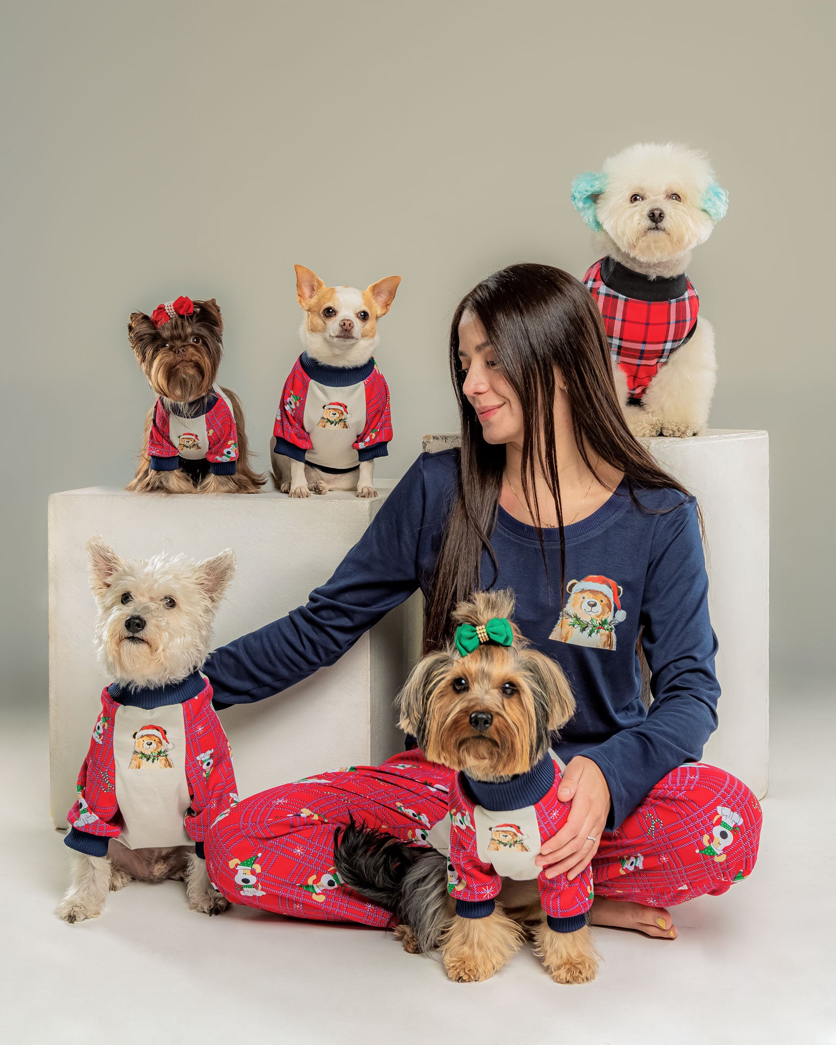 Incluye camiseta manga larga con estampado en el pecho y pantalón rojo estampado, resorte ancho en la cintura para mayor comodidad y bota recta que da un look más elegante.