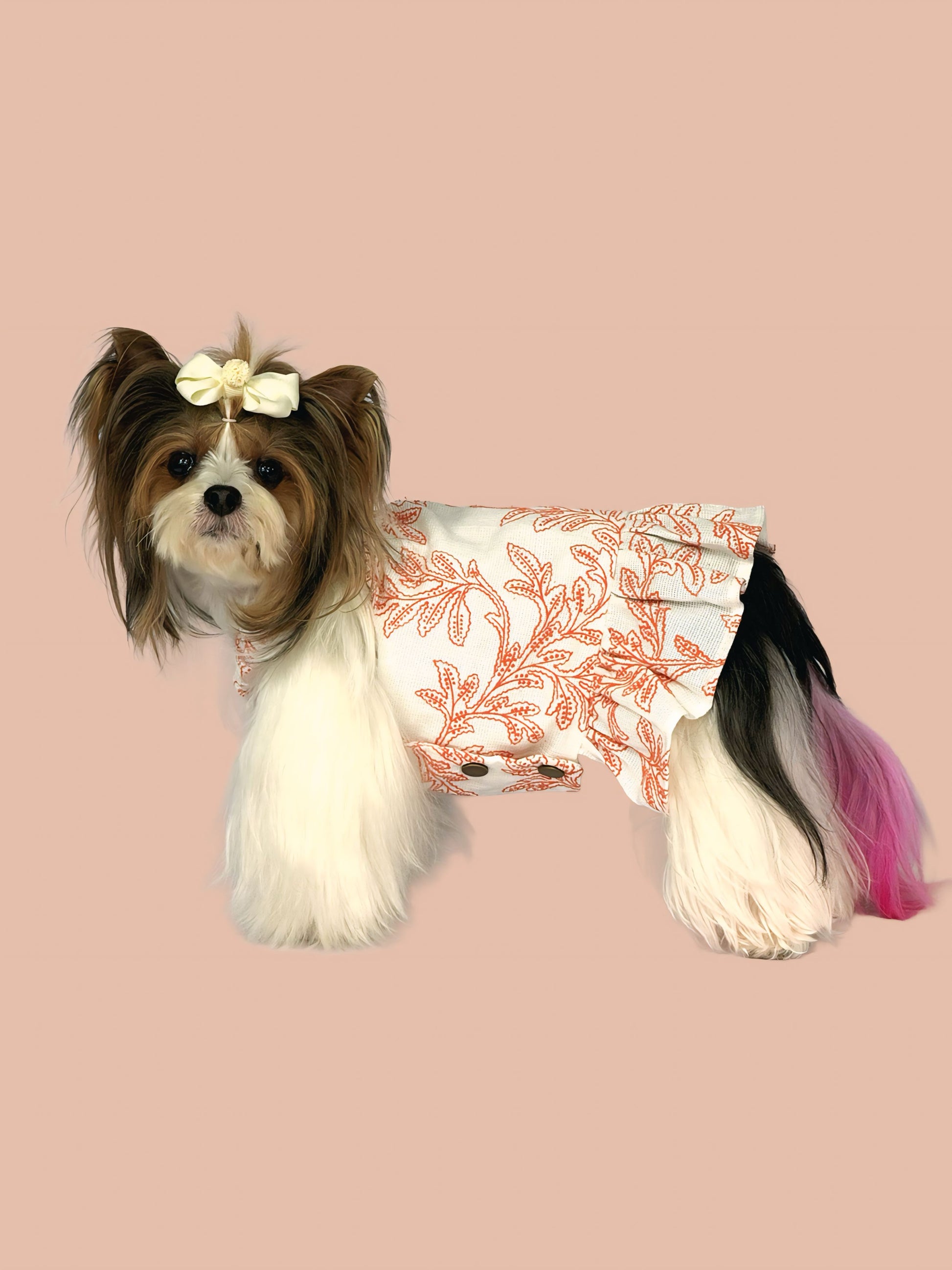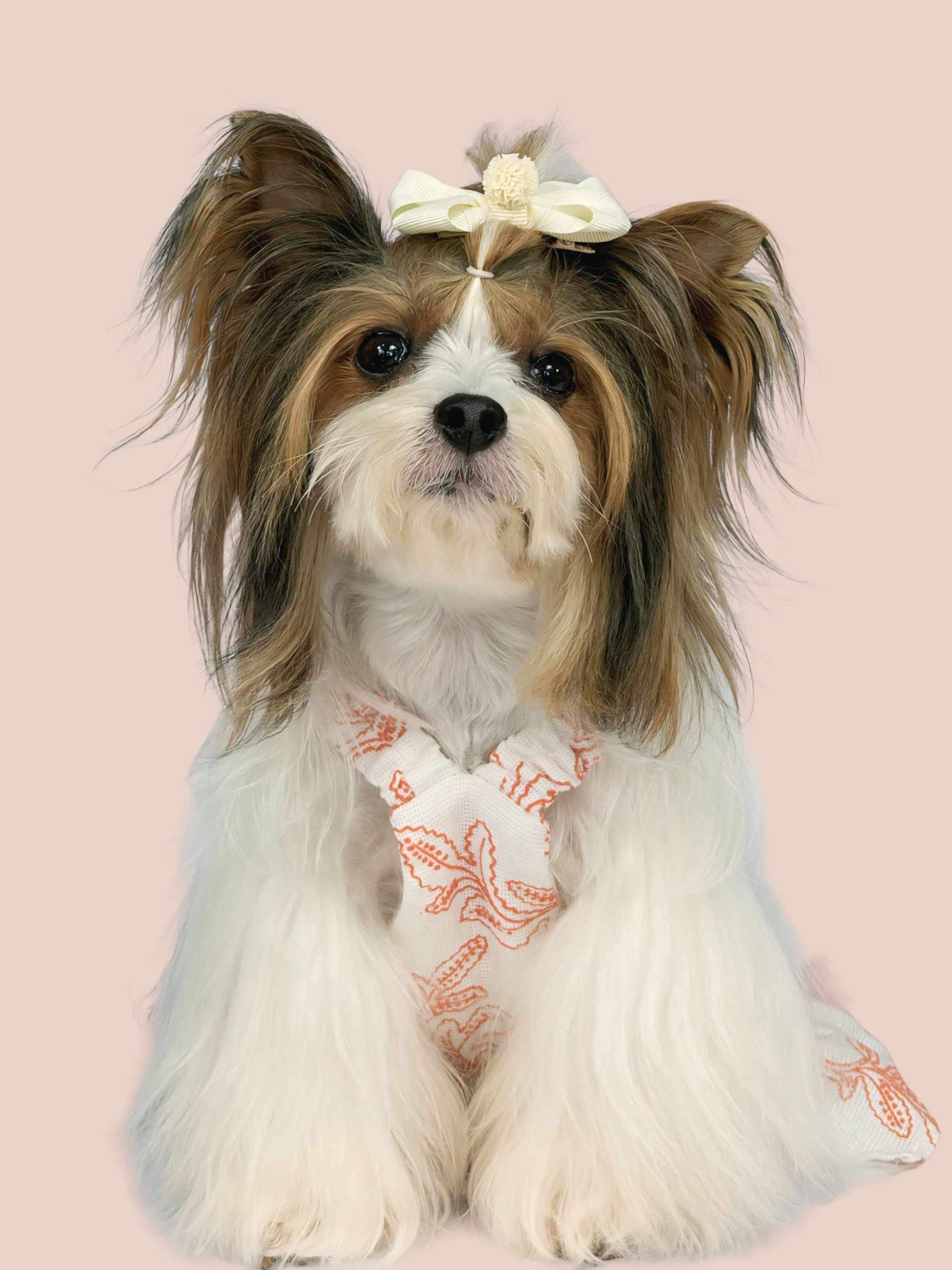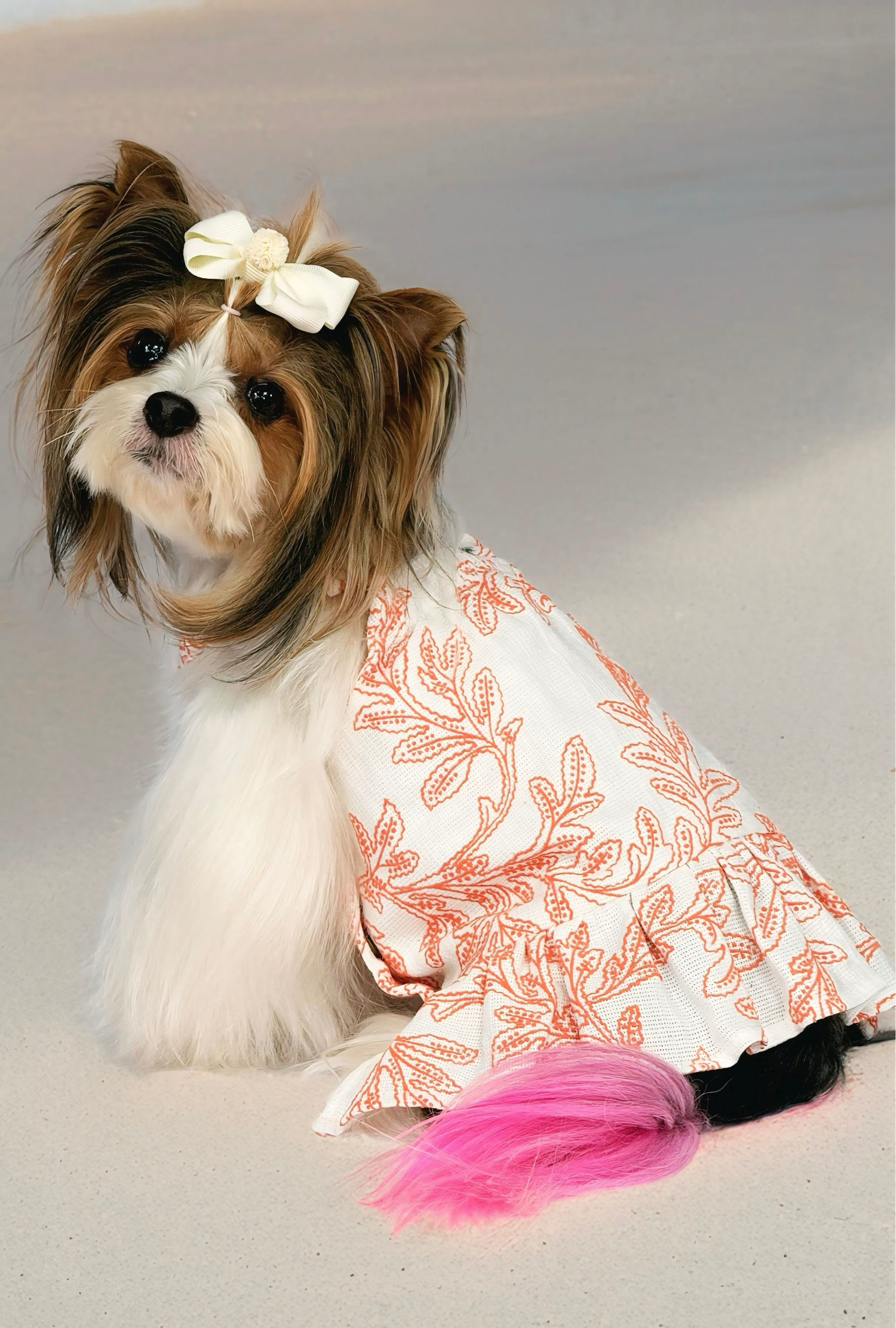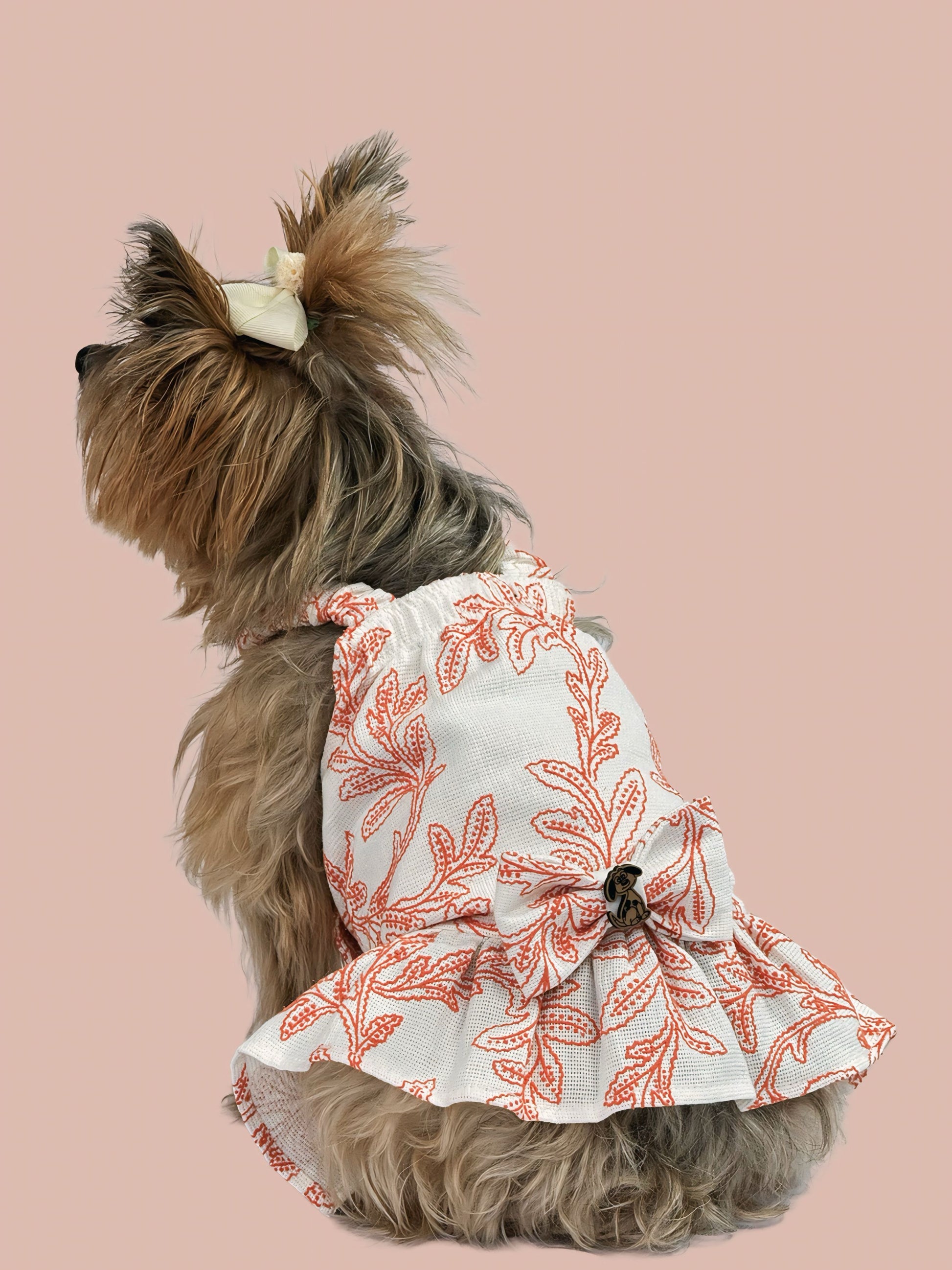 Vestido fabricado en lino, tiras rizadas, broches metálicos al costado para mayor comodidad, falda coqueta rizada, moño prendedor que puedes poner y quitar con delicado perrito en madera, tela super fresca ideal para climas cálidos.